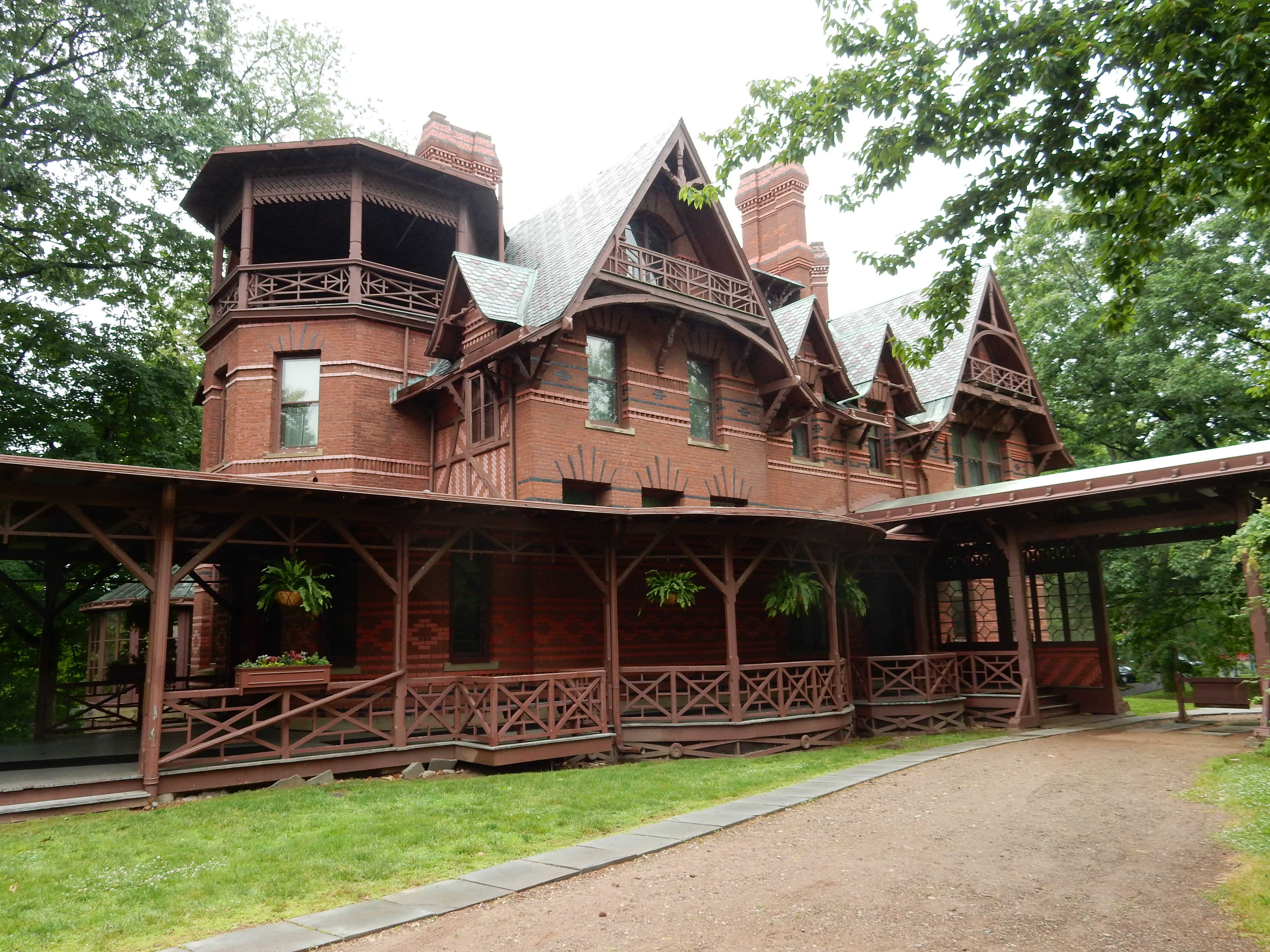 These past few days, I’ve also visited Cape Cod and Kennedy’s vacation “cottage” at Hyannis. I stopped by Kennebunkport where the Bush family vacations. I spent two days in Bar Harbor where I drove past Martha Stewart and John Travolta’s homes. I ate fresh lobster in Maine and went hiking at the Rachel Carson National Wildlife Reserve. Today, I walked through Mark Twain’s Connecticut home, as well as the home of his next-door neighbor, Harriett Beecher Stowe. As I was driving through Kennebunkport, I decided not to get out and browse the shops, as I’m sure someone may have offered me their change as I was dressed in New Balance tennis shoes, hiking pants, and a Colorado t-shirt. I did, however, slow down to gawk at the huge cottages. I turned a corner and got stuck behind a trash truck. I watched the men lift and tote the bins in and out of the grinder at the back of the truck. Folks waiting in the street were visibly irritated; yet, I imagine they may have been more impatient if they’d gotten to their own cottages and found the trash bins overflowing and not picked up.